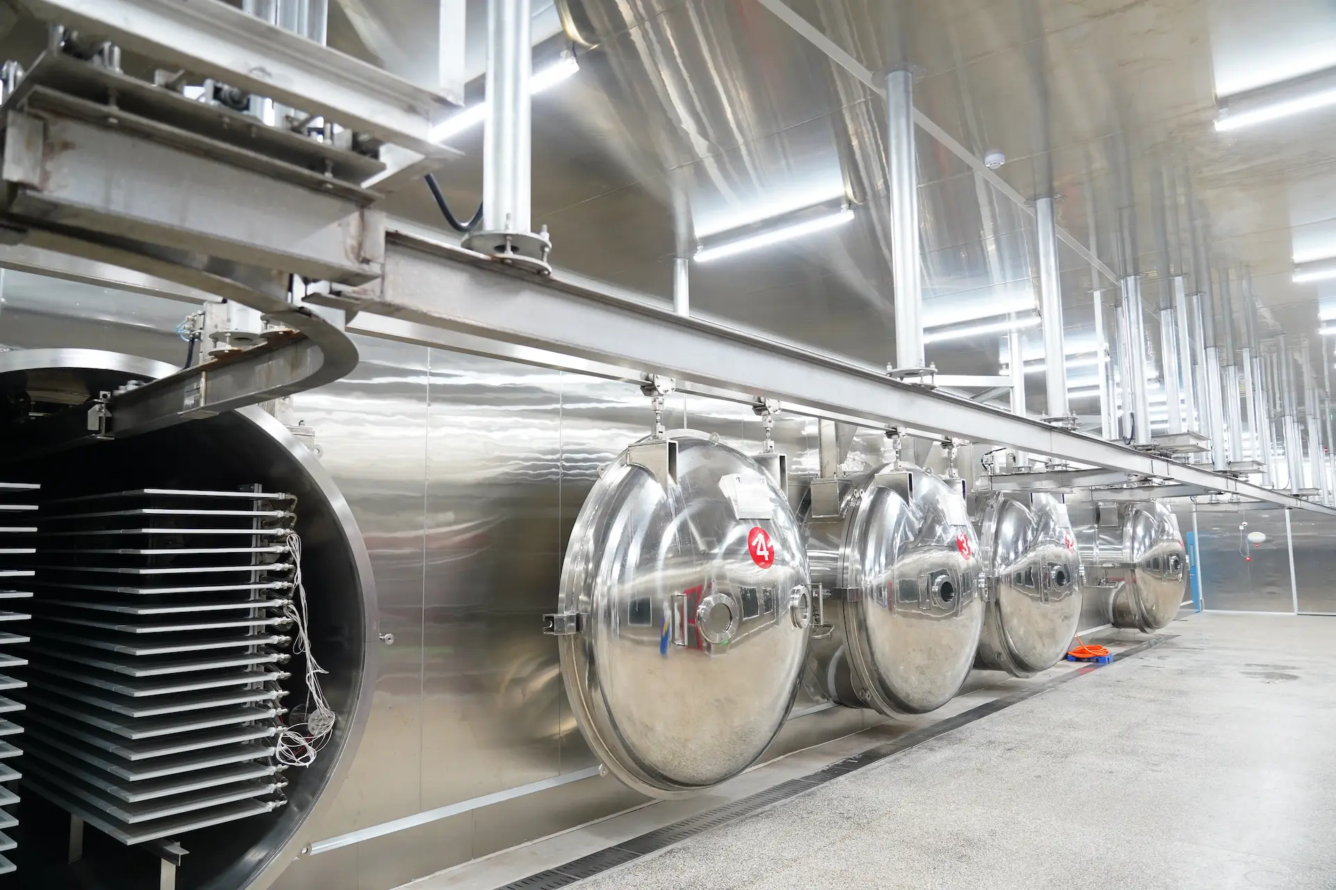Each freeze dryer is paired with an IQF room for pre-freezing, optimizing the freeze-drying process. The dual-suite system allows for concurrent pre-freezing and freeze-drying, saving valuable time per batch.