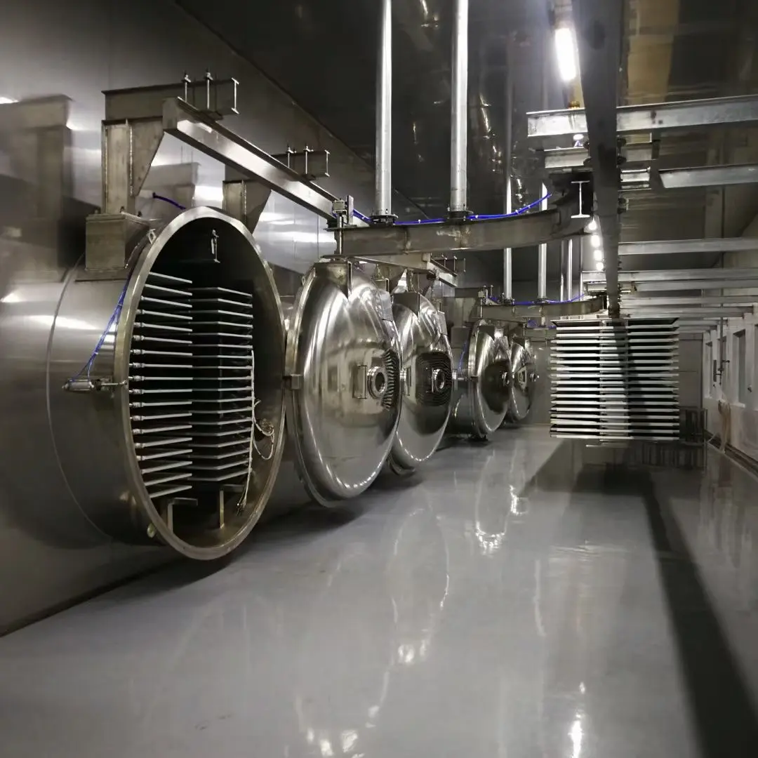 Material trays are positioned between two heat plates in the drying chamber, where radiative heating efficiently transfers heat energy to the frozen products. The heat plates, made of aluminum alloy for high heat conductivity, ensure precise temperature control and uniformity.